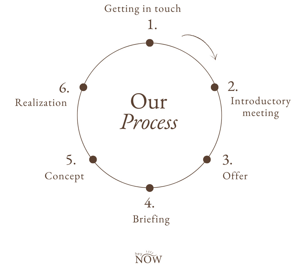 Hey Now is led by Sara as a one-woman studio, supported by a trusted network of creatives and specialists. When needed, the right people join the project — ensuring flexibility, quality and a personal way of working.